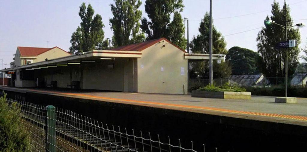 Keywords: 38 08S 145 51E Drouin railway station is located on the Orbost line in Victoria, Australia. It serves the town of Drouin. Opened 1 March 1878. attribution: Brad F 89