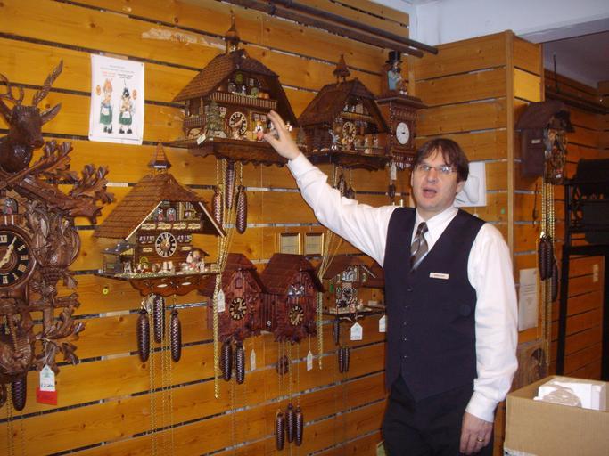 Keywords: 'Drubba Clock factory ' in Titisee in Germany..jpg en Demonstration and explanation of the Cuckoo Clocks at the Drubba clock shop in Titisee in the Black forest region of Germany own Rudolph A furtado Friday 21-5-2010 Cuckoo clocks