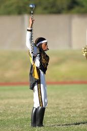 Keywords: drum major band leader football game marching band marching uniform school leader american football field teenager field grass boy