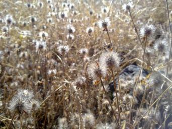 Keywords: dry grass weeds field summer seed autumn yellow sunlight round fluffy seed head dried grass park nature wilderness plant close-up leaves small
