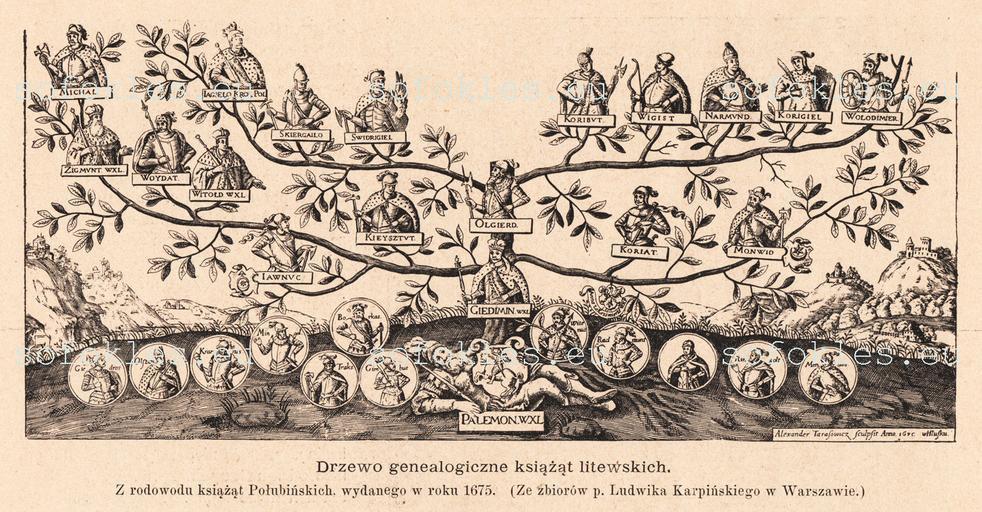 Keywords: DRZEWO GENEALOGICZNE.jpg pl DRZEWO GENEALOGICZNE KSIĄŻĄT LITEWSKICH LITWA XVII wiek ru Генеалогическое д ево литовских князей http //allegro pl/ShowItem2 php item 2322465512 ars_source ars ars_socket_id 5 ars_rule_id 72 op unknown XVII wiek Grand Dukes of Lithuania Family trees of Lithuania PD-Art |