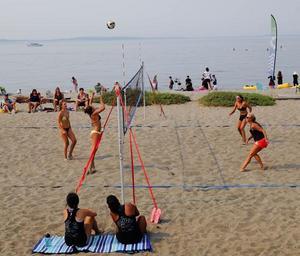 Keywords: outdoor sport court game Beach volleyball at Alki Beach in West Seattle. Beach volleyball at Alki Beach in West Seattle.