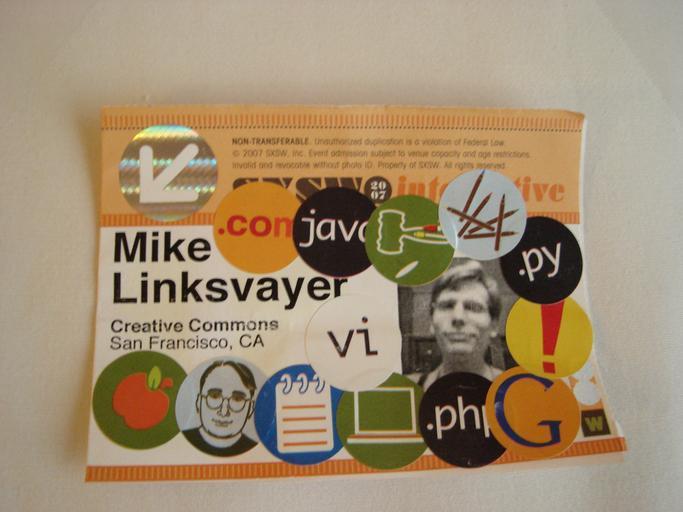 Keywords: sxsw badge mike linksvayer mikelinksvayer stickers indoor dsc01253.jpg Explore mlinksva's 21522 photos on Flickr!