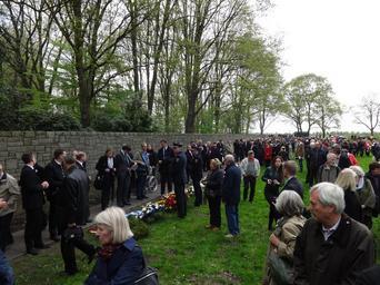 Keywords: neuengamme concentrationcamp kz hamburg jahrestag anniversary gedenken kranzniederlegung crowd people outdoor