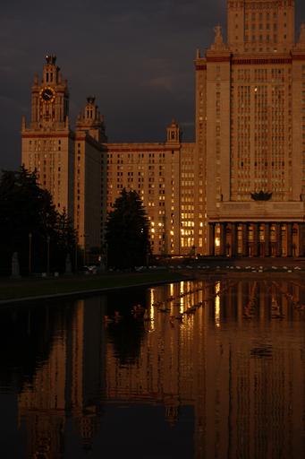 Keywords: msu мгу гз moscow_state_university moscowstateuniversity sunrise dawn reflection melting water building architecture outdoor