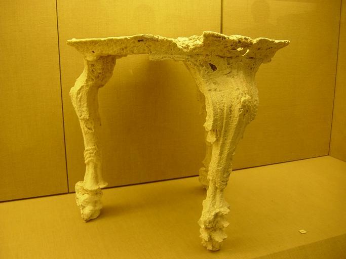 | Keywords: DSC06647.JPG  Volcanic ash cast of a wooden table Museum of Cycladic Culture Akrotiri excavation artifacts Santorini Cyclides Hellas Greece Own Taken April 3 2007 User Leonard G Von diesem Bild existieren die folgenden Bildbearbeitungen aus der Bilderwerkstatt Retouched versions of this picture from the german Graphic Lab Image DSC06647-1 jpg Image DSC06647-ColAdj JPG See gallery below for related images Note this white plaster image is provided for a color reference for other images Related images provided for further color adjustment If you color adjust an image reference that in this specific image file above rather than in gallery <gallery> Image MusAkrotiriItem48-6634 JPG Image MusAkrotiriCardItem48Image06635 jpg Image MusAkrotiriItems49-52-6634 JPG Image MusAkrotirCardVaseDesc06636 jpg Image MuseAckrotiriItems53-54-6638 jpg Image MuseAcrotiriItems55-57-6639 jpg Image MuseAcrotiriItems-6640 jpg Image MuseAcrotiriItems-6641 JPG Image MuseAcrotiriItems-6642 JPG Image MuseAckrotiriItem70-6643 JPG Animal figurines Image MusAkrotiriCard63-70-06644 jpg Image MuseAcrotiriItems-133-134-6645 JPG Image MusAkrotiriCard134-138-06646 jpg Image DSC06647 JPG Volcanic ash cast white plaster for color reference for other images Image VolcanicAshObjCast06647 jpg Volcanic ash cast green channel with some distortion removed Image MuseAcrotiriItem160-6648 jpg Oven Image CycladicClayOven06649 jpg Oven green channel with distortion removed Image MuseAckrotiriItem161-162-6649 JPG Firedogs Image CycladicFireDogs06649 jpg Firedogs green channel Image MuseAcrotiriItems228-229-6650 JPG Image MuseAcrotiriItems-6651 JPG Image MuseAcrotiriItems-6652 JPG Image MuseAcrotirieItem232-6653 JPG Image MuseAcroItems283-6654 JPG </gallery> Furniture fossils in the Prehistoric Museum of Thira |