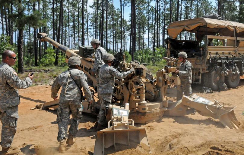 | Keywords: artillery army usarmy 82nd airborne division 82ndairbornedivision divarty m777 82nd airbornedivarty 82ndairbornedivarty airborne airborne field artillery airbornefieldartillery gundevils fortbragg outdoor people Paratroopers from Charlie Battery, 3rd Battalion, 319 AFAR conducted Table five dry fire certification training with their M-777A2s last week on Pike Field, Fort Bragg, N.C. Part of the certification process was to go from a high angle fire mission to an action azimuth. The Artillerymen had to lower the tube, turn the medium towed howitzer 1600 mils, or 90 degrees, using nothing but force, dig in the spades and prepare to fire another mission under a strict time standard.(Capt. Joe Bush, 82nd Airborne DIVARTY/ Released.) — at Fort Bragg Army Base. Paratroopers from Charlie Battery, 3rd Battalion, 319 AFAR conducted Table five dry fire certification training with their M-777A2s last week on Pike Field, Fort Bragg, N.C. Part of the certification process was to go from a high angle fire mission to an action azimuth. The Artillerymen had to lower the tube, turn the medium towed howitzer 1600 mils, or 90 degrees, using nothing but force, dig in the spades and prepare to fire another mission under a strict time standard.(Capt. Joe Bush, 82nd Airborne DIVARTY/ Released.) — at Fort Bragg Army Base. |