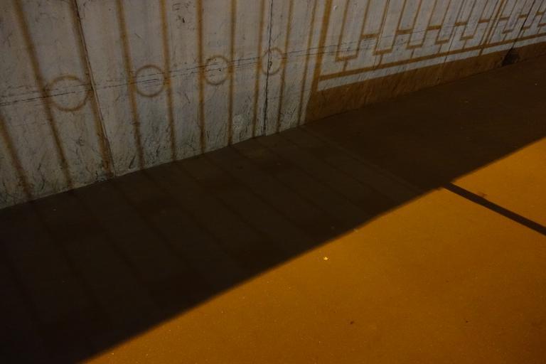 Keywords: shadow fence circles squares geometry diagonal minimalism abstract