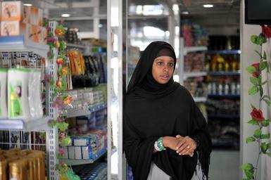 Keywords: people Nasra Agil, owner of Mogadishu's first dollar store, stands among her products in the Somali capital on January 20. AU UN IST PHOTO / Tobin Jones Nasra Agil, owner of Mogadishu's first dollar store, stands among her products in the Somali capital on January 20. AU UN IST PHOTO / Tobin Jones