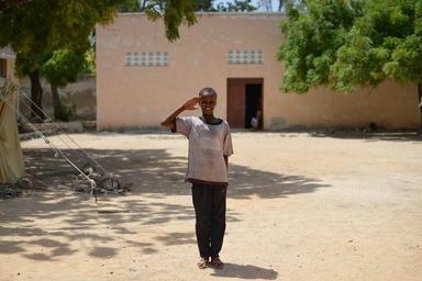 Keywords: amisom au africa african union africanunion mogadishu police spf search somali police force somalipoliceforce somalia arrest capacity building capacitybuilding policing security training outdoor A young boy salutes at General Kahiye Police Academy in Mogadishu, Somalia, on June 16. The African Union is currently training one hundred Somali Police officers in a program aimed at equipping the Somali Police Force with the necessary skills to effectively arrest suspects, stop vehicles at checkpoints, and cordon off areas. AMISOM Photo / Tobin Jones A young boy salutes at General Kahiye Police Academy in Mogadishu, Somalia, on June 16. The African Union is currently training one hundred Somali Police officers in a program aimed at equipping the Somali Police Force with the necessary skills to effectively arrest suspects, stop vehicles at checkpoints, and cordon off areas. AMISOM Photo / Tobin Jones |