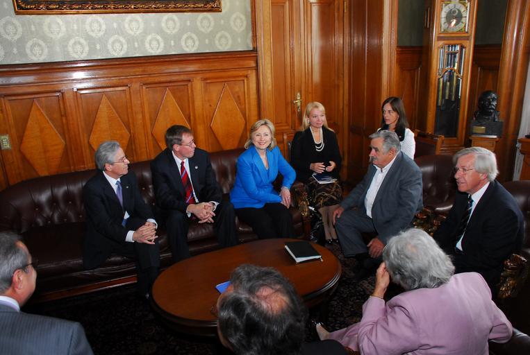 | Keywords: visdip clinton mujica uruguay indoor Secretary of State Hillary Clinton meets with Uruguayan President-elect José Mujica and Vice President-elect Danilo Astori, a few hours before the Inauguration Ceremony. Also in the meeting are: U.S. Ambassador to Uruguay David Nelson, Assistant Secretary Arturo Valenzuela, Uruguayan Ambassador to the U.S. Carlos Gianelli, and future First Lady, Senator Lucía Topolansky. [State Department photo by Vince Alongi / Public Domain] Secretary of State Hillary Clinton meets with Uruguayan President-elect José Mujica and Vice President-elect Danilo Astori, a few hours before the Inauguration Ceremony. Also in the meeting are: U.S. Ambassador to Uruguay David Nelson, Assistant Secretary Arturo Valenzuela, Uruguayan Ambassador to the U.S. Carlos Gianelli, and future First Lady, Senator Lucía Topolansky. [State Department photo by Vince Alongi / Public Domain] |