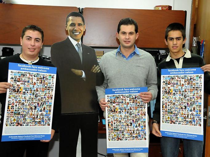 | Keywords: facebook contest fans social media socialmedia visdip ambassador nelson ambassadornelson uruguay us embassy uruguay usembassyuruguay indoor Ignacio Ojeda, Barack Obama, Alvaro Carril y Juan Martín Chiale. Los tres ganadores del concurso Meet the Ambassador, posan junto al Presidente de los Estados Unidos sosteniendo cada uno su copia del póster. [US Embassy Photo by Pablo Castro] Ignacio Ojeda, Barack Obama, Alvaro Carril y Juan Martín Chiale. Los tres ganadores del concurso Meet the Ambassador, posan junto al Presidente de los Estados Unidos sosteniendo cada uno su copia del póster. [US Embassy Photo by Pablo Castro] |