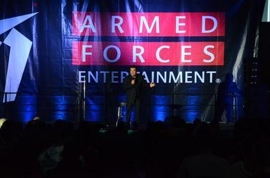 Keywords: text ANSBACH, Germany (May 20, 2015) -- Comedians George Lopez and Bryan Kellen visited U.S. Army Garrison Ansbach for a stand-up comedy show Tuesday at the Katterbach Fitness Center. The show, presented by Armed Forces Entertainment and titled “George Lopez: Grunt by Association,” played to an audience of approximately 1,500 USAG Ansbach community members. Before the show, Lopez and Kellen toured a hangar and the flightline of Katterbach Army Airfield with Soldiers of the 12th Combat Aviation Brigade. After the show, Lopez and Kellen stayed to take photos with fans of the show. (U.S. Army photo by Stephen Baack, USAG Ansbach Public Affairs) ANSBACH, Germany (May 20, 2015) -- Comedians George Lopez and Bryan Kellen visited U.S. Army Garrison Ansbach for a stand-up comedy show Tuesday at the Katterbach Fitness Center. The show, presented by Armed Forces Entertainment and titled “George Lopez: Grunt by Association,” played to an audience of approximately 1,500 USAG Ansbach community members. Before the show, Lopez and Kellen toured a hangar and the flightline of Katterbach Army Airfield with Soldiers of the 12th Combat Aviation Brigade. After the show, Lopez and Kellen stayed to take photos with fans of the show. (U.S. Army photo by Stephen Baack, USAG Ansbach Public Affairs) |