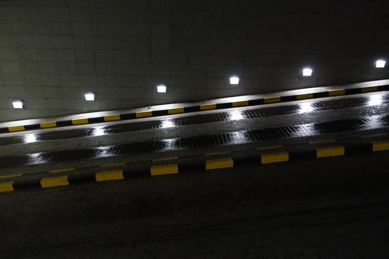 Keywords: diagonal rather_minimal ratherminimal lights stripes parallel underground parking abstract