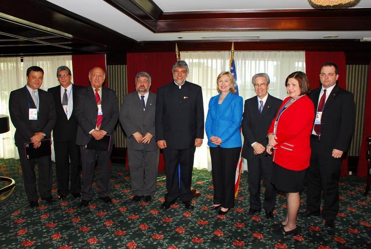 | Keywords: secretary hillary clinton secretaryhillaryclinton josé mujica josémujica ambassador nelson ambassadornelson uruguay inauguration 2010 inauguration2010 paraguay lugo valenzuela Secretary of State Hillary Clinton meets with Paraguayan President Fernando Lugo. [State Department photo by Vince Alongi / Public Domain] Secretary of State Hillary Clinton meets with Paraguayan President Fernando Lugo. [State Department photo by Vince Alongi / Public Domain] | ||||