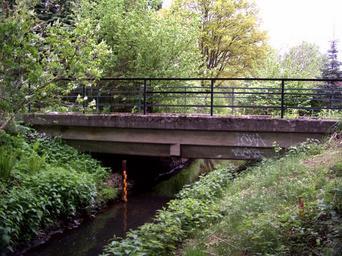 Keywords: DSCF0163-Uhlandstraße.JPG de Die Panke fließt von Bernau nach Berlin-Friedrichstraße durch urbanes Gebiet viele Brücken verbinden die getrennten Ufer und einen was zusammengehört Diese Straßenbrücke führt die Uhlandstraße in Zepernick Gemeinde Panketal über die Panke own Boonekamp 52 39 45 N 13 33 11 E region DE-BE_heading 015 Panke in Zepernick |
