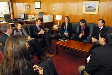 | Keywords: indoor Ambassador Nelson converses with Eisenhower Fellows Adrienne Kravitz, Carina Novarese and Daniel Pagliano. [U.S. Embassy photo by Pablo Castro] Ambassador Nelson converses with Eisenhower Fellows Adrienne Kravitz, Carina Novarese and Daniel Pagliano. [U.S. Embassy photo by Pablo Castro] |