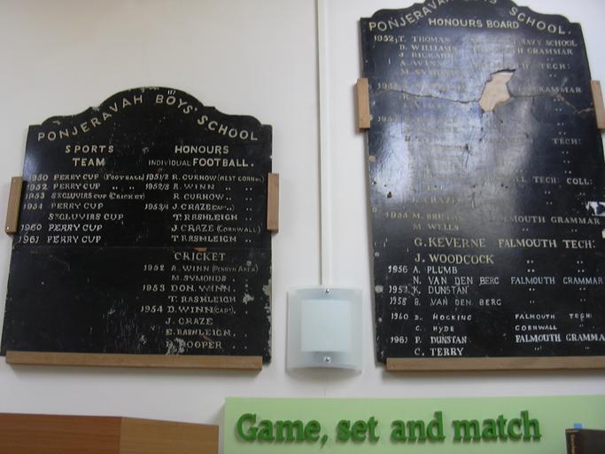 Keywords: DSCN0698HonourBoards.JPG Constantine Heritage Centre Honour Boards from Ponjeravah School Own 2007-07-30 Vernon39 Constantine Cornwall Photographs by Vernon White