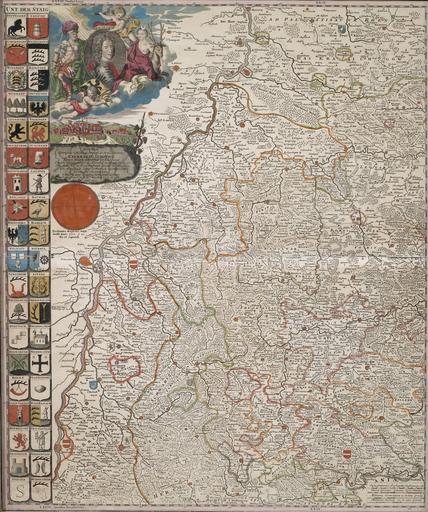 Keywords: Ducatus Wurtenbergici 1.jpg de Ducatus Wurtenbergici cum Locis limitaneis linker Teil mit Herrschermedaillon Eberhard Ludwigs mit Miniaturansicht von Stuttgart und württembergischen Stadtwappen Verlegt bei Johann B Homann Nürnberg 1710 57 x 47 cm Nagel Auktionen http //www auction de 1710 M Johann Majer <gallery> File Ducatus Wurtenbergici 2 jpg rechter Teil right part File Ducatus Wurtenbergici in totum jpg beide Teile both parts </gallery> PD-old-100 18th-century maps of Baden-Württemberg Duke Eberhard Ludwig of Württemberg Coats of arms from Baden-Württemberg History of Stuttgart 1710 maps Images by Nagel Auktionen |