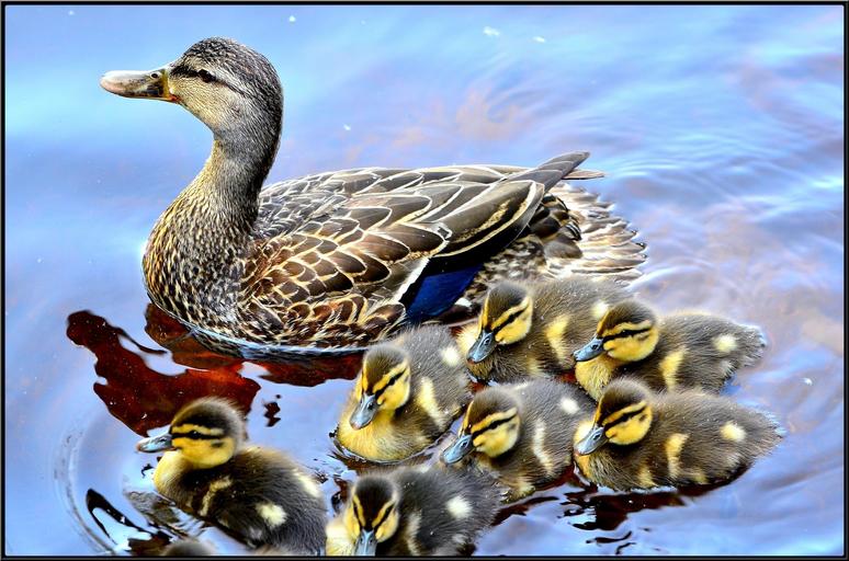 Keywords: duck ducklings lake family water birds