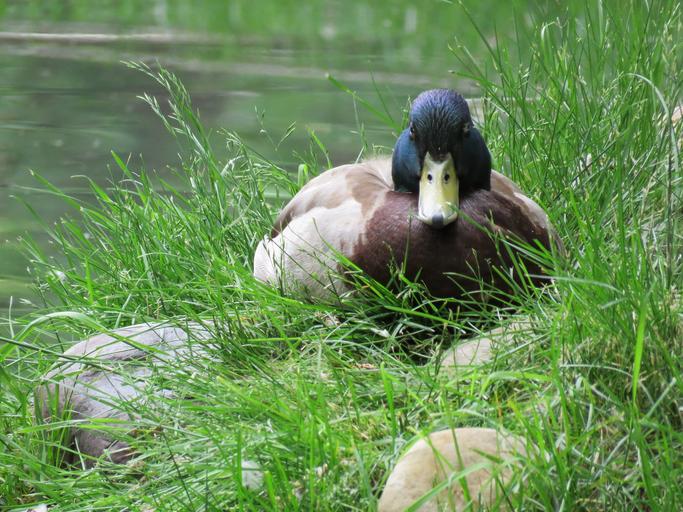 Keywords: duck mallard bird wildlife water male beak waterfowl spring calm feather