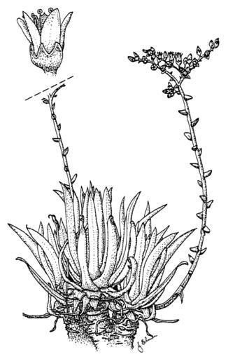 | Keywords: DudleyaTraskiaeClarkFig7.png en Figure 7 from above-mentioned work botanical drawing of Dudleya traskiae Clark Ronilee A Halvorson William L 1989 Status of the endangered and rare plants on Santa Barbara Island Channel Islands National Park Endangered Plant Program Natural Heritage Division California Department of Fish and Game page 20 Clark Ronilee A Halvorson William L authors; artwork uncredited 1989 California Department of Fish and Game http //nrm dfg ca gov/documents/ContextDocs aspx cat Section6PlantReportshttp //www dfg ca gov/web/use aspx PD-USGov Dudleya |