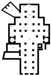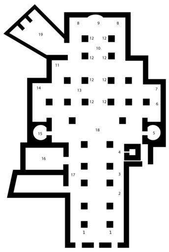 Keywords: Duomo Siena interior.svg Plan of Siena Cathedral 1 Antonio Federighi Holy Water Stoups 2 Raffaello Vanni St Francis de Sales 3 Pier Dandini Saint Catherine 4 Bell Tower 5 Gian Luigi Bernini Madonna del Voto Chapel 6 Luigi Mussini Saint Crescentius 7 Alessandro Casolani Nativity 8 Wooden Choir 9 Duccio di Buoninsegna Stained Glass Window 10 Baldassare Peruzzi Main Altar 11 Donatello Bishop Pecci's Tomb 12 Domenico Beccafumi Angel Candelabra Holders 13 Nicola Pisano Pulpit 14 Francesco Vanni Saint Ansanus 15 Donatello St John the Baptist 16 Piccolomini Library 17 Andrea Bregno Piccolomini Altar 18 Pavement 19 Sacristy Pianta della cattedrale di Siena 1 Acquasantiere di Antonio Federighi 2 S Francesco di Sales di Raffaello Vanni 3 S Caterina di Pier Dandini 4 Torre campanaria 5 Cappella della Madonna del Voto di Bernini 6 San Crescenzio di Luigi Mussini 7 Natività di Alessandro Casolani 8 Coro ligneo 9 Vetrata di Duccio da Buoninsegna 10 Altare maggiore di Baldassare Peruzzi 11 Lastra tombale di Giovanni Pecci di Donatello 12 Angelo portacero di Domenico Beccafumi 13 Pulpito di Nicola Pisano 14 Sant'Ansano di Francesco Vanni 15 San Giovanni Battista di Donatello 16 Libreria Piccolomini 17 Altare Piccolomini di Andrea Bregno 18 Pavimento 19 Sagrestia <gallery>Image Duomo Siena interior Apr 2008 5 JPG</gallery> 2008 Gothika created with Adobe Illustrator Image may be used for any purpose Cathedral Siena - Plans SVG buildings |