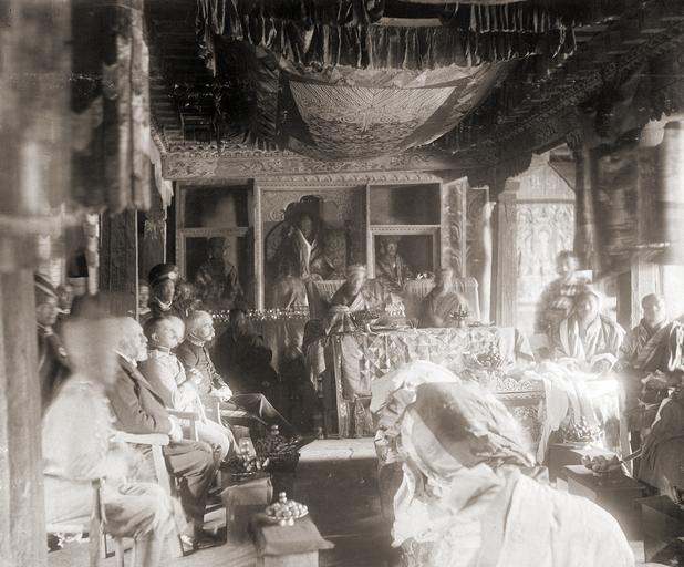 | Keywords: Durbar of Ugyen Wangchuk, receiving the order of the Knight Commander of the Indian Empire, KCIE, at Punakha, Bhutan, 1905.jpg King Ugyen Wangchuk receiving the order of the Knight Commander of the Indian Empire KCIE ” at Punakha Bhutan 1905 Seated from the left wall - Subadar Jahandad Khan 40th Pathans A W Paul Major Rennick John Claude White; centre - Deb Raja Head Abbot; right - Thimbu Jongpen Dzongpen or lord of Thimpu Dzong Tongsa Penlop Ugyen Kazi British Agent http //www bl uk/onlinegallery/onlineex/apac/photocoll/d/019pho000000020u00015000 html British Library John Claude White 1853 “1918 1905 PD-old-auto 1918 Ugyen Wangchuk group Government officials of Bhutan Buddhist monks in Punakha ¢ 1905 in Bhutan John Claude White Historical photographs of Bhutan Black and white photographs of Bhutan ¢ Punakha District |