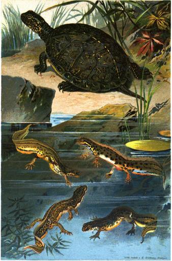 | Keywords: Dürigen, 1897, T06.JPG Emys europaea 2 Männchen und 3 Weibchen des Streifen-Molch Triton vulgaris 4 Männchen und 5 Weibchen des Leisten-Molch Triton paradoxus other date by 1897 Reproduction color print watercolours Die Darstellungen der Molche nutzte Gustav Mützel lt Vorwort bei der Anfertigung einer Holzschnittzeichnung für Brehms Tierleben Bruno Dürigen Deutschlands Amphibien und Reptilien Eine Beschreibung und Schilderung sämmtlicher in Deutschland und den angrenzenden Gebieten vorkommenden Lurche und Kriechthiere Magdeburg Creutz'sche Verlagsbuchhandlung 1897 <br />Scan YQUIAQAAIAAJ <gallery> Dürigen 1897 T01 JPG Tafel I Dürigen 1897 T02 JPG Tafel II Dürigen 1897 T03 JPG Tafel III Dürigen 1897 T04 JPG Tafel IV Dürigen 1897 T05 JPG Tafel V Dürigen 1897 T06 JPG Tafel VI Dürigen 1897 T07 JPG Tafel VII Dürigen 1897 T08 JPG Tafel VIII Dürigen 1897 T09 JPG Tafel IX Dürigen 1897 T10 JPG Tafel X Dürigen 1897 T11 JPG Tafel XI Dürigen 1897 T12 JPG Tafel XII </gallery> PD-old-auto 1916 Deutschlands Amphibien und Reptilien 1897 Christian Votteler Emys orbicularis Lissotriton vulgaris Lissotriton helveticus |