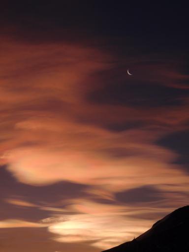 Keywords: dusk clouds sky horizon moon crescent sunset