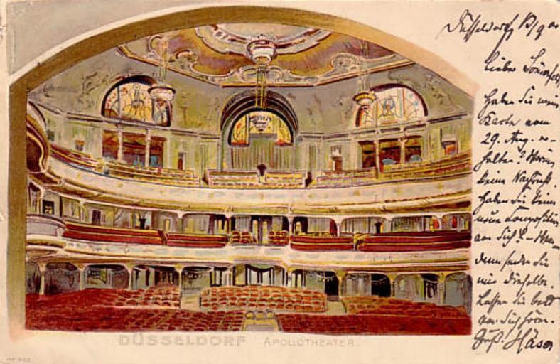 | Keywords: Düsseldorf Apollotheater Postkarte versandt um 1900.jpg en Düsseldorf Apollotheater Ansichtskarte des Verlags Friedr Wolfrum Düsseldorf http //www andreas-praefcke de/carthalia/germany/duesseldorf_apollo htm author ~ 1900 Düsseldorf Apollotheater Postkarte versandt um 1900 cropped jpg PD-old Apollo-Theater Düsseldorf Postcards of Düsseldorf 1900 in Düsseldorf Images from Carthalia | ||||