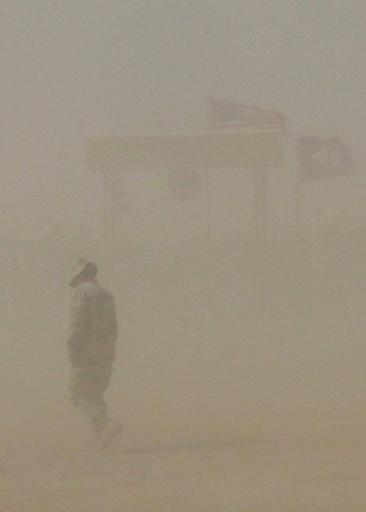 MAKE A MEME View Large Image Dust storm.jpg en 090513-N-9410R-006 HELMAND PROVINCE Afghanistan May 13 2009 A Seabee assigned to Naval Mobile Construction Battalion NMCB 5 walks across the Camp Natasha flag circle during a dust storm NMCB-5 is deployed to Afghanistan ...