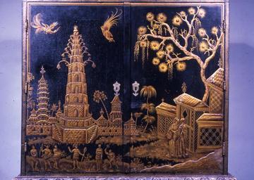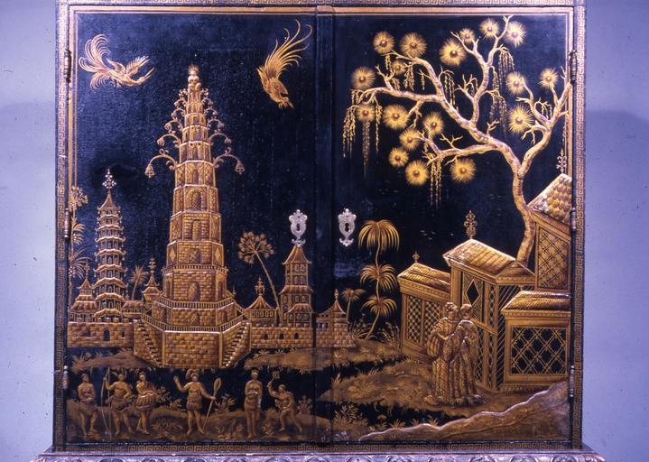Keywords: Dutch - Cabinet with Chinese and American Motifs - Walters 6589 - Detail A.jpg This cabinet was made by a Dutch craftsman to imitate the expensive lacquered Chinese and Japanese chests imported by the Dutch East India Company The painter adapted some motifs such as the pagodas on the drawer fronts from Chinese porcelains but the figures are only Asian by virtue of their long embroidered coats with sashes The headwear including feather headdresses is completely fanciful Some figures are actually Native Americans adapted from engravings of 1584 reporting English explorations of Virginia On the exterior side panels are remarkable adaptations of engravings recording a French expedition of 1564 to Florida Young Floridians play competitive games while beautiful birds imaginative renderings of the bird of paradise from the East Indies swoop around them The maker surely hoped that his customers would just enjoy the exotic details between 1690 1700 Baroque wood pine with paint and gilt Upper part cm 82 5 95 accession number 65 89 22673 Barra Foundation Inc date and mode of acquisition unknown Walters Art Museum June 1974 by gift Gift of the Barra Foundation Inc 1974 place of origin Netherlands Walters Art Museum license Baroque art in the Walters Art Museum Art of the Netherlands Exotic decorative artefacts 17th-century furniture Media contributed by the Walters Art Museum needs artist review |