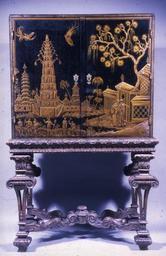 Keywords: Dutch - Cabinet with Chinese and American Motifs - Walters 6589.jpg This cabinet was made by a Dutch craftsman to imitate the expensive lacquered Chinese and Japanese chests imported by the Dutch East India Company The painter adapted some motifs such as the pagodas on the drawer fronts from Chinese porcelains but the figures are only Asian by virtue of their long embroidered coats with sashes The headwear including feather headdresses is completely fanciful Some figures are actually Native Americans adapted from engravings of 1584 reporting English explorations of Virginia On the exterior side panels are remarkable adaptations of engravings recording a French expedition of 1564 to Florida Young Floridians play competitive games while beautiful birds imaginative renderings of the bird of paradise from the East Indies swoop around them The maker surely hoped that his customers would just enjoy the exotic details between 1690 1700 Baroque wood pine with paint and gilt Upper part cm 82 5 95 accession number 65 89 22673 Barra Foundation Inc date and mode of acquisition unknown Walters Art Museum June 1974 by gift Gift of the Barra Foundation Inc 1974 place of origin Netherlands Walters Art Museum license Baroque art in the Walters Art Museum Art of the Netherlands Exoticism in European culture 17th-century furniture Exotic decorative artefacts Media contributed by the Walters Art Museum needs artist review |