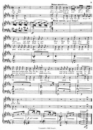 | Keywords: Dvorak's Biblicke Pisne i-5.jpg Dvorak's_Biblicke_Pisne_i- jpg 4 6 Antonín Dvořák's Biblícké Písně Biblical Songs Op 99 1884 Book 1 containing Songs 1-5 While Dvorak later orchestrated the work this the complete original piano-and-voice version While the massacre of the original music to fit the German and English is appalling it does contain the original Czech and the original music for the Czech The German and English should probably be considered only as a translation This is the first five songs out of ten the other five are printed in a second volume I have not yet tracked down I haven't been able to find Book 2 unfortunately 1895 copy in my own possession The only copyright claimed on the sheet music itself is to N Simrock which is a publishing house Antonin Dvorak PD-Old Original Czech From http //music ibiblio org/pub/multimedia/pandora/vorbis/contrib/Marta_Chaloupka_Live/Czech notes accompanying the Pandora Music recording 1 Psalm 97 2-6 Oblak a mrákota jest vůkol Něho spravedlnost a soud základ trůnu Jeho Oheň předchází jej a zapaluje vůkol nepřátele Jeho Zasvěcujíť se po okršlku světa blýskání Jeho; to vidouc země děsí se Hory jako vosk rozplývají se před obličejem Hospodina panovníka vší země a slávu jeho spatřují všichni národové 2 Psalms 119 114-117 119 120 Skrýše má a pavéza má Ty jsi na slovo Tvé očekávám Odstuptež ode mne nešlechetníci abych ostříhal přikázaní Boha svého Posiluj mne bych zachován byl a patřil k ustanovením Tvým ustavičně Děsí se strachem před Tebou tělo mé; nebo soudů Tvých bojím se náramně 3 Psams 55 1 2 4/5 6 7 8 Slyš ó Bože Slyš modlitbu mou a neskrývej se před prosbou mou Pozoruj a vyslyš mne neboť naříkám v úpění svém a kormoutím se Srdce mé tesklí ve mně a strachové smrti přišli na mne a hrůza přikvačila mne I řekl jsem Ó bych měl křídla jako holubice zaletěl bych a poodpočinul Aj daleko bych se vzdálil a přebýval bych na poušti Pospíšil bych ujíti větru prudkému a vichřici 4 Psalms 23 1-4 Hospodin jest můj pastýř nebudu míti nedostatku Na pastvách zelených pase mne k vodám tichým mne přivodí Duši mou občerstvuje vodí mne po stezkách spravedlnosti pro jméno své Byť mi se dostalo jíti přes údolí stínu smrti nebuduť se báti zlého nebo Ty se mnou jsi; a prut Tvůj a hůl Tvá toť mne potěšuje 5 Psalms 144 9 145 1-3 5 6 Bože Bože píseň novou zpívati budu Tobě na loutně a žalmy tobě prozpěvovati Na každý den dobrořečiti budu Tobě a chváliti jméno Tvé na věky věků Hospodin jistě veliký jest a vší chvály hodný a velikost jeho nemůž vystižena býti O slávě a kráse a velebnosti Tvé i o věcech Tvých předivných mluviti budu A moc přehrozných skutků Tvých vsichni rozhlašovati budou; i já důstojnost Tvou budu vypravovati 6 Psalms 61 1 3 4 63 1 4/5 Slyš ó Bože volání mé pozoruj modlitby mé Nebo jsi býval útočiště mé a pevná věže před tváří nepřítele Buduť bydliti v stánku tvém na věky schráním se v skrýši křídel tvých Bože Bůh silný můj ty jsi tebeť hned v jitře hledám Tebe žízní duše má po tobě touží tělo mé v zemi žíznivé a vyprahlé v níž není vody A tak abych tobě dobrořečil a s radostným rtů prozpěvováním chválila by tě ústa má 7 Psalms 137 1-5 Při řekách Babylonských tam jsme sedávali a plakávali rozpomínajíce se na Sion Na vrbí v té zemi zavěšovali jsme citary své když se tam dotazovali nás ti kteříž nás zajali na slova písničky říkajíce Zpívejte nám některou píseň Sionskou Odpovídali jsme Kterakž bychom mohli zpívati píseň Hospodinovu v zemi cizozemců Jestliže se zapomenu na tebe ó Jeruzaléme ó zapomeniž i pravice má umění svého 8 Psalms 25 16-18 20 Popatřiž na mne a smiluj se nade mnou neboť jsem opuštěný a strápený Soužení srdce mého rozmnožují se z úzkostí mých vyveď mne z úzkostí mých vyveď mne Smiluj se nade mnou Viz trápení mé a bídu mou a odpusť všecky hříchy mé Ostříhej duše mé a vytrhni mne ať nejsem zahanben neboť v tebe doufám neboť v tebe doufám 9 Psalms 121 1-4 Pozdvihuji očí svých k horám odkud by mi přišla pomoc Pomoc má jest od Hospodina kterýž učinil nebe i zemi Nedopustíť aby se pohnouti měla noha tvá nebo nedřímeť strážný tvůj Aj nedřímeť ovšem nespí ten kterýž ostříhá Izraele 10 Psalms 98 1 4/5 7 8 96 12/11 Zpívejte Hospodinu píseň novou neboť jest divné věci učinil Zvuk vydejte prozpěvujte a žalmy zpívejte Zvuč moře i to což v něm jest okršlek světa i ti což na něm bydlí Řeky rukama plésejte spolu s nimi i hory prozpěvujte Plésej pole a vše což na něm plésej země zvuč i moře i což v něm jest Biblické písně Psalm 97 Biblické písně Music in 1894 Christianity in the Czech Republic Czech language |