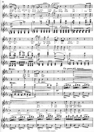 Keywords: Dvorak's Biblicke Pisne i-10.jpg Dvorak's_Biblicke_Pisne_i- jpg 9 11 Antonín Dvořák's Biblícké Písně Biblical Songs Op 99 1884 Book 1 containing Songs 1-5 While Dvorak later orchestrated the work this the complete original piano-and-voice version While the massacre of the original music to fit the German and English is appalling it does contain the original Czech and the original music for the Czech The German and English should probably be considered only as a translation This is the first five songs out of ten the other five are printed in a second volume I have not yet tracked down I haven't been able to find Book 2 unfortunately 1895 copy in my own possession The only copyright claimed on the sheet music itself is to N Simrock which is a publishing house Antonín Dvořák 1841 1904 PD-Old Original Czech From http //music ibiblio org/pub/multimedia/pandora/vorbis/contrib/Marta_Chaloupka_Live/Czech notes accompanying the Pandora Music recording 1 Psalm 97 2-6 Oblak a mrákota jest vůkol Něho spravedlnost a soud základ trůnu Jeho Oheň předchází jej a zapaluje vůkol nepřátele Jeho Zasvěcujíť se po okršlku světa blýskání Jeho; to vidouc země děsí se Hory jako vosk rozplývají se před obličejem Hospodina panovníka vší země a slávu jeho spatřují všichni národové 2 Psalms 119 114-117 119 120 Skrýše má a pavéza má Ty jsi na slovo Tvé očekávám Odstuptež ode mne nešlechetníci abych ostříhal přikázaní Boha svého Posiluj mne bych zachován byl a patřil k ustanovením Tvým ustavičně Děsí se strachem před Tebou tělo mé; nebo soudů Tvých bojím se náramně 3 Psams 55 1 2 4/5 6 7 8 Slyš ó Bože Slyš modlitbu mou a neskrývej se před prosbou mou Pozoruj a vyslyš mne neboť naříkám v úpění svém a kormoutím se Srdce mé tesklí ve mně a strachové smrti přišli na mne a hrůza přikvačila mne I řekl jsem Ó bych měl křídla jako holubice zaletěl bych a poodpočinul Aj daleko bych se vzdálil a přebýval bych na poušti Pospíšil bych ujíti větru prudkému a vichřici 4 Psalms 23 1-4 Hospodin jest můj pastýř nebudu míti nedostatku Na pastvách zelených pase mne k vodám tichým mne přivodí Duši mou občerstvuje vodí mne po stezkách spravedlnosti pro jméno své Byť mi se dostalo jíti přes údolí stínu smrti nebuduť se báti zlého nebo Ty se mnou jsi; a prut Tvůj a hůl Tvá toť mne potěšuje 5 Psalms 144 9 145 1-3 5 6 Bože Bože píseň novou zpívati budu Tobě na loutně a žalmy tobě prozpěvovati Na každý den dobrořečiti budu Tobě a chváliti jméno Tvé na věky věků Hospodin jistě veliký jest a vší chvály hodný a velikost jeho nemůž vystižena býti O slávě a kráse a velebnosti Tvé i o věcech Tvých předivných mluviti budu A moc přehrozných skutků Tvých vsichni rozhlašovati budou; i já důstojnost Tvou budu vypravovati 6 Psalms 61 1 3 4 63 1 4/5 Slyš ó Bože volání mé pozoruj modlitby mé Nebo jsi býval útočiště mé a pevná věže před tváří nepřítele Buduť bydliti v stánku tvém na věky schráním se v skrýši křídel tvých Bože Bůh silný můj ty jsi tebeť hned v jitře hledám Tebe žízní duše má po tobě touží tělo mé v zemi žíznivé a vyprahlé v níž není vody A tak abych tobě dobrořečil a s radostným rtů prozpěvováním chválila by tě ústa má 7 Psalms 137 1-5 Při řekách Babylonských tam jsme sedávali a plakávali rozpomínajíce se na Sion Na vrbí v té zemi zavěšovali jsme citary své když se tam dotazovali nás ti kteříž nás zajali na slova písničky říkajíce Zpívejte nám některou píseň Sionskou Odpovídali jsme Kterakž bychom mohli zpívati píseň Hospodinovu v zemi cizozemců Jestliže se zapomenu na tebe ó Jeruzaléme ó zapomeniž i pravice má umění svého 8 Psalms 25 16-18 20 Popatřiž na mne a smiluj se nade mnou neboť jsem opuštěný a strápený Soužení srdce mého rozmnožují se z úzkostí mých vyveď mne z úzkostí mých vyveď mne Smiluj se nade mnou Viz trápení mé a bídu mou a odpusť všecky hříchy mé Ostříhej duše mé a vytrhni mne ať nejsem zahanben neboť v tebe doufám neboť v tebe doufám 9 Psalms 121 1-4 Pozdvihuji očí svých k horám odkud by mi přišla pomoc Pomoc má jest od Hospodina kterýž učinil nebe i zemi Nedopustíť aby se pohnouti měla noha tvá nebo nedřímeť strážný tvůj Aj nedřímeť ovšem nespí ten kterýž ostříhá Izraele 10 Psalms 98 1 4/5 7 8 96 12/11 Zpívejte Hospodinu píseň novou neboť jest divné věci učinil Zvuk vydejte prozpěvujte a žalmy zpívejte Zvuč moře i to což v něm jest okršlek světa i ti což na něm bydlí Řeky rukama plésejte spolu s nimi i hory prozpěvujte Plésej pole a vše což na něm plésej země zvuč i moře i což v něm jest Biblické písně Psalm 55