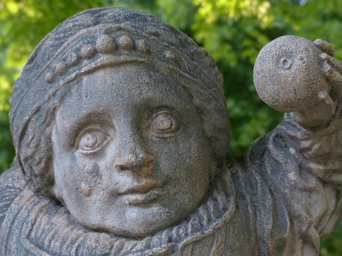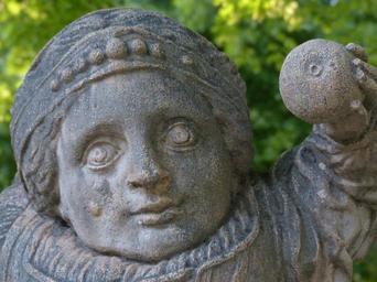 Keywords: dwarf gnome fig sculpture globe zwergelgarten mirabell gardens baroque salzburg stone statue stone stone figure apple face