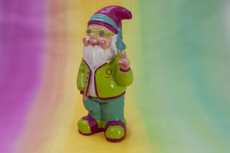 Keywords: dwarf peace spring garden mood colorful summer crazy psychedelic flashy oblique pink yellow green turquoise garden gnome peace maker