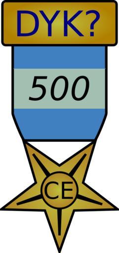 | Keywords: Dyk500CE.svg own User Certes Proposed award for Award for 500 DYK creations and expansions at Did you know Own work by Certes following request at WP GL/I Certes en Original upload log en wikipedia FtCG page en wikipedia Dyk500CE svg wikitable Date/Time Dimensions User Comment - 16 08 2 January 2010 203 × 431 6 180 bytes Certes w en <nowiki> Proposed award for Award for 500 DYK creations and expansions at Own work by following request at WP GL/I </nowiki> Wikipedia Did you know awards | ||||