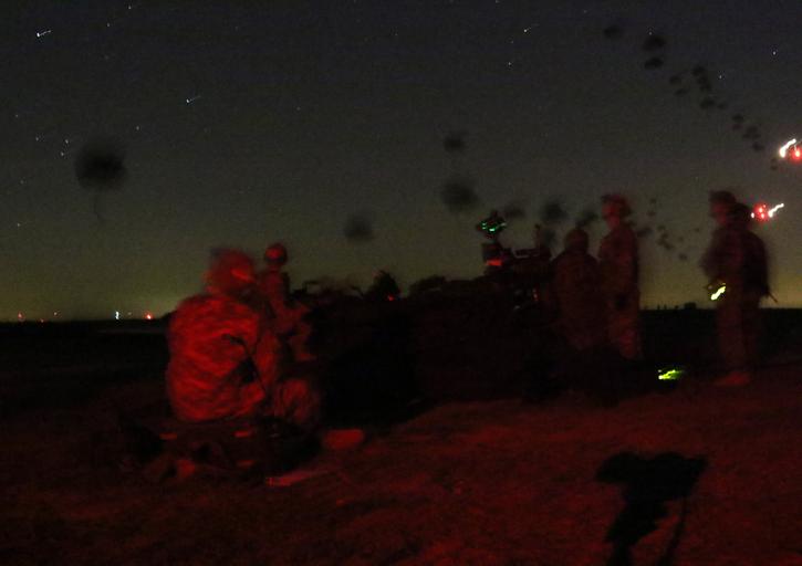 | Keywords: usarmy 82nd airborne division 82ndairbornedivision artillery night drop nightdrop airborne m777a2 82nd airborne division artillery 82ndairbornedivisionartillery c-130 c130 Airborne Artillerymen assigned to Charlie Battery, 2nd Battalion, 319th Airborne Field Artillery Regiment watch follow on Paratroopers jump on to Holland Drop Zone at Fort Bragg N.C. in the early hours of Mar. 15, 2016, while they prepare to conduct a fire mission after dropping a 5-ton M777A2 howitzer from a C-130 cargo plane. Charlie Battery was recently named the best active duty field artillery unit in the U.S. Army. (Official 82nd ABN DIVARTY photo by Capt. Joe Bush/ Released) Airborne Artillerymen assigned to Charlie Battery, 2nd Battalion, 319th Airborne Field Artillery Regiment watch follow on Paratroopers jump on to Holland Drop Zone at Fort Bragg N.C. in the early hours of Mar. 15, 2016, while they prepare to conduct a fire mission after dropping a 5-ton M777A2 howitzer from a C-130 cargo plane. Charlie Battery was recently named the best active duty field artillery unit in the U.S. Army. (Official 82nd ABN DIVARTY photo by Capt. Joe Bush/ Released) |