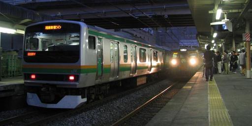 | Keywords: E231 and 115 Ageo 20091101.jpg JR East E231 series and 115 series electric multiple units at Ageo Station 上尾駅に並ぶ新旧の高崎線電車 左(3番線) E231系1000番台(クハE231形8000番台)湘南新宿ライン南行 右(2番線) 115系1000番台(クモハ115形1000番台 クモハ115-1035) 下り回 臨時快 両毛線120周年号 (桐生発 上尾ゆき 2009年11 1日のみ運転) 終 後 Photographed by Vantey 2009-11-01 Uploader; Vantey <gallery> File Ryomo Line 120thAnniv Train Kumoha115-1035 Ageo 20091101 jpg File Ryomo Line 120thAnniv Train Kumoha115-1035 Ageo 20091101 jpg File Railfans photographing at Ageo Station 20091101 jpg File Railfans photographing at Ageo Station 20091101 jpg </gallery> Taken with Canon PowerShot SX100 IS Files uploaded by Vantey 2009 in rail transport in Japan JR East E231-1000 JNR 115 JR East Ageo Station Night in Saitama prefecture Rail transport events in Japan 2009 events in Japan November 2009 in Japan 2009-11-01 New and old vehicles in Japan |
