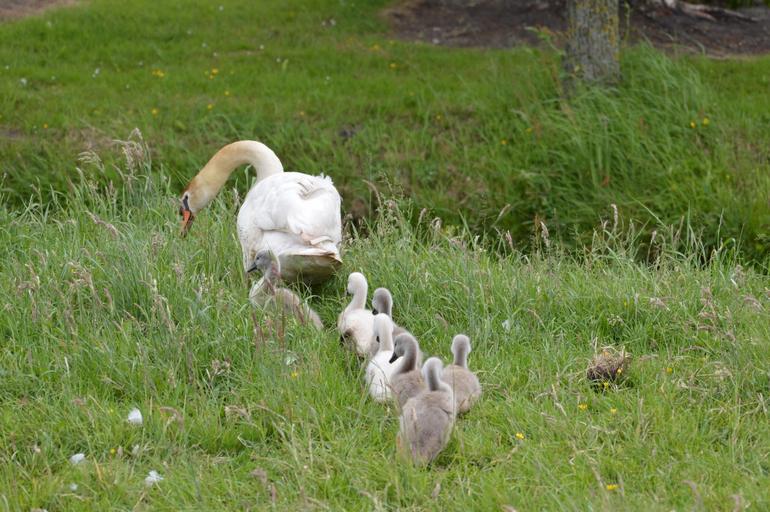 Keywords: e-card water swan black ballet nature animal series water dance youngs family spring birth young