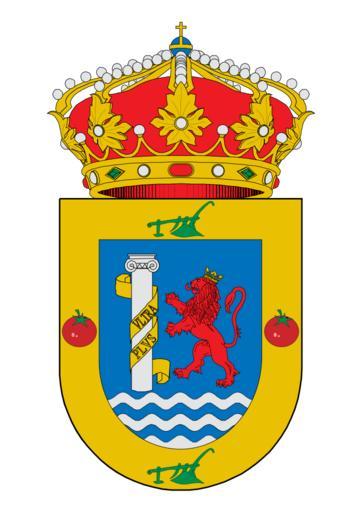 | Keywords: E.L.M. de Guadiana del Caudillo (Badajoz).svg es Escudo de la Entidad Local Menor de Guadiana del Caudillo perteneciente al municipio de Badajoz en la provincia de Badajoz España Descripción Trae por armas la localidad de Guadiana del Caudillo sobre un campo de azur una columna de plata acolada de dos vueltas por una filactería de oro cargada con el lema PLUS ULTRA en letras de sable y siniestrada de un león de gules coronado de oro y empinado a su fuste; campaña ondada de plata y de azur; bordura de oro cargada con dos arados de sinople uno en el jefe y otro en la punta y en los flancos con dos tomates de su color natural Se timbra con una corona real de España D O E núm 141 de 4 de diciembre de 2204 own Abraham Vázquez 2011-02-07 Cc-zero Coats of arms of municipalities of the province of Badajoz Bordures or with charges |