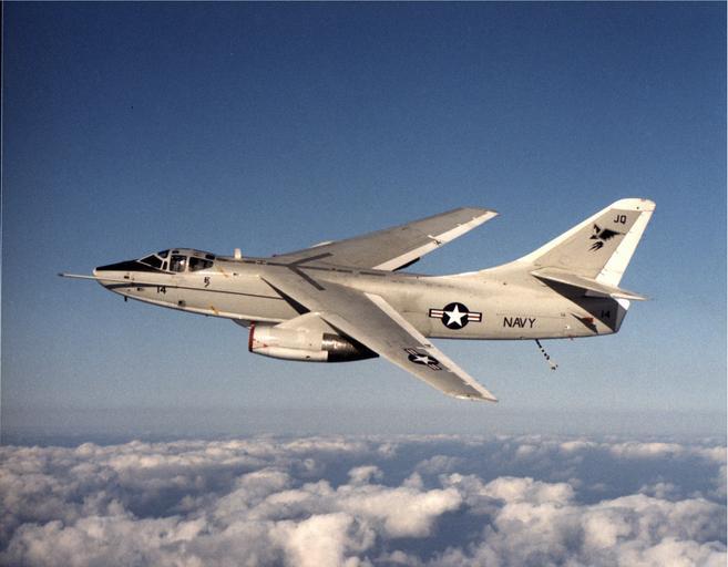 | Keywords: EA-3B Skywarrior of VQ-2 over the Gulf of Sidra 1984.jpeg A U S Navy Douglas EA-3B Skywarrior of Fleet Air Reconnaissance 2 VQ-2 Batmen in flight over the Gulf of Sidra VQ-2 Det A was assigned to Carrier Air Wing 1 CVW-1 aboard the aircraft carrier USS America CV-66 for a deployment to the Mediterranean Sea and the Indian Ocean from 24 April to 14 November 1984 <br> This aircraft Ranger 14 JQ-14 later made VQ-2's last catapult trap on the USS Coral Sea CV-43 on 2 November 1987 LT Bill Steen was the pilot http //collections naval aviation museum/emuwebdoncoms/pages/doncoms/AdvQuery php U S Navy National Museum of Naval Aviation photo No http //collections naval aviation museum/emuwebdoncoms/pages/doncoms/Display php irn 16002754 QueryPage 2Femuwebdoncoms 2Fpages 2Fdoncoms 2FAdvQuery php 1996 253 3484 1984 U S Navy PD-USGov-Military-Navy Douglas EA-3B Skywarrior Fleet Air Reconnaissance Squadron 2 United States Navy |