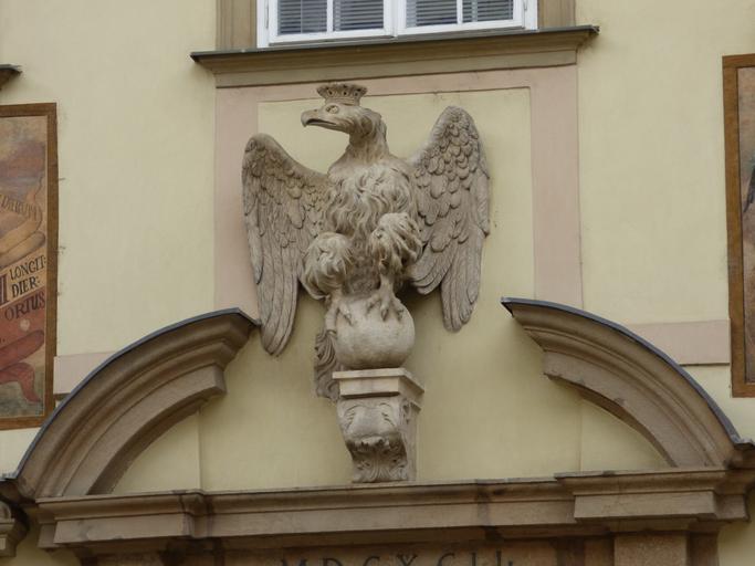 Keywords: eagle sculpture crown decorating emboss the old town the city centre façades old house ornament monument wall decoration eagles