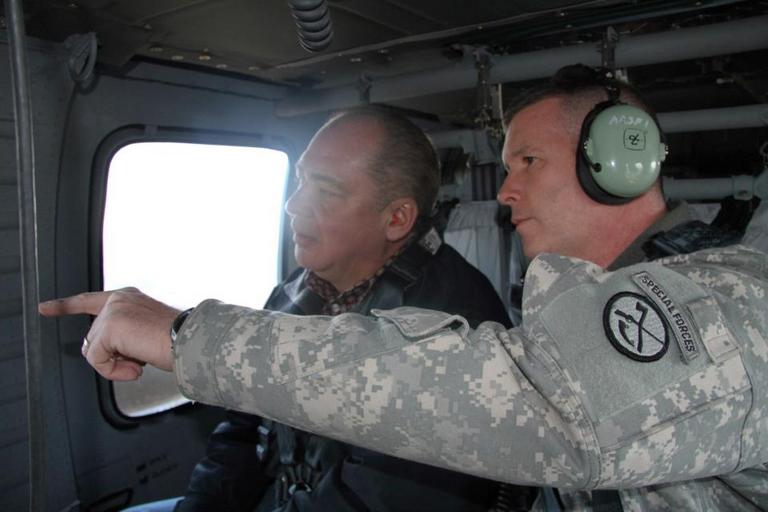 | Keywords: Earl Ray Tomblin and James Hoyer.jpg West Virginia Adjutant General Maj Gen James A Hoyer points out storm damage near Prickett's Fork W Va to West Virginia Governor Earl Ray Tomblin aboard a West Virginia National Guard UH-60 Blackhawk helicopter March 3 2012 Tomblin Hoyer and other state officials travelled to speak with victims of high winds caused by a large storm system that moved through the southern part of the state March 2 2012 The West Virginia National Guard deployed crews into some of the affected areas to work with local and state authorities to assess the damage and coordinate the response of the WVNG West Virginia Air National Guard photo by Master Sgt Andrew M Lamoreaux https //www flickr com/photos/thenationalguard/6956428031/ West Virginia Tornado Response 2012-03-05 13 00 https //www flickr com/people/33252741 N08 The National Guard PD-USGov The National Guard https //flickr com/photos/33252741 N08/6956428031 2016-04-11 23 50 28 United States Government Work 2012 in West Virginia Earl Ray Tomblin March 2012 in the United States |