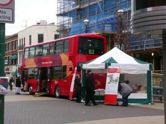 | Keywords: East-London-Transit-Demonstration-Bus2.jpg East London Transit BRT scheme being shown to the public outside Ilford Town Hall on 24 January 2010 The service is operated by Blue Triangle and seen here is their bus WVL334 LX59 DDL a Volvo B9TL/Wright Eclipse Gemini 2 It wears a special livery for use on the East London Transit services although it is still mostly red like all other London buses own Spsmiler 2010-01-24 Buses in the United Kingdom photographed in January 2010 59 registered buses in the United Kingdom January 2010 in England London Buses route EL2 buses at shows museums or events WVL class London buses in Go-Ahead Blue Triangle East London Transit livery Buses in the London Borough of Redbridge |