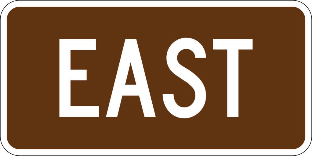 Keywords: East plate small brown.svg 600 mm by 300 mm 24 in by 12 in east plate with small letters made to the specifications of the http //mutcd fhwa dot gov/SHSm/Guide pdf 2004 edition of Standard Highway Signs sign M3-2 Uses the http //www triskele com/fonts/index html Roadgeek 2005 fonts United States law does not permit the copyrighting of typeface designs and the fonts are meant to be copies of a U S Government-produced work anyway Colors are from http //mutcd fhwa dot gov/kno-colorspec htm Pantone Brown 469 converted to RGB by http //www reeddesign co uk/test/pantone2rgb html The outside border has a width of 1 1 mm and a color of black so it shows up; in reality signs have no outside border own Ltljltlj User Ltljltlj/Template M3-2 - Cardinal Direction Auxiliary Diagrams of brown and white road signs |