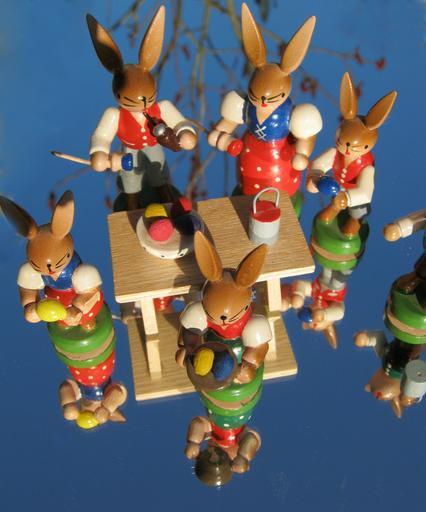 Keywords: easter bunny family paint easter eggs easter colorful figures wood mirrored hard working