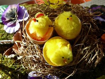 Keywords: easter egg nest decoration chicks art object yellow bird's nest